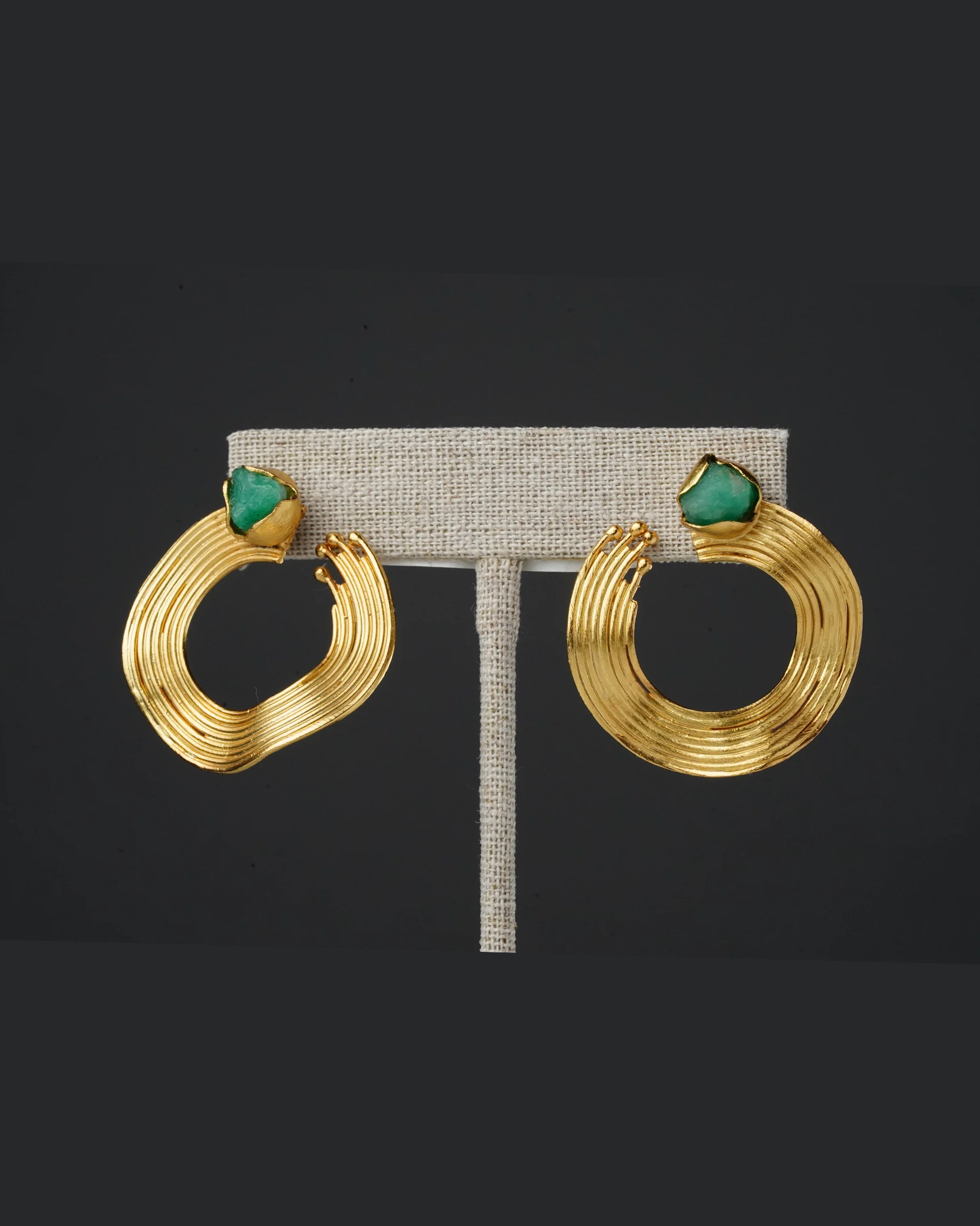 24k Gold Plated over Brass earrings with Raw Colombian and Certificated Emeralds.