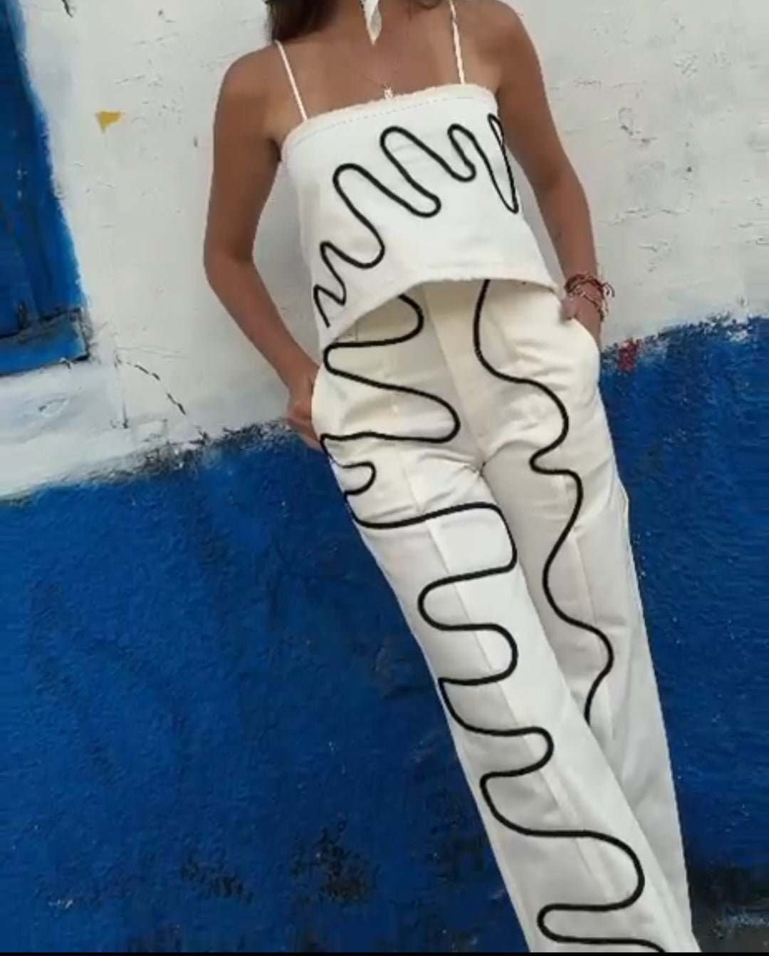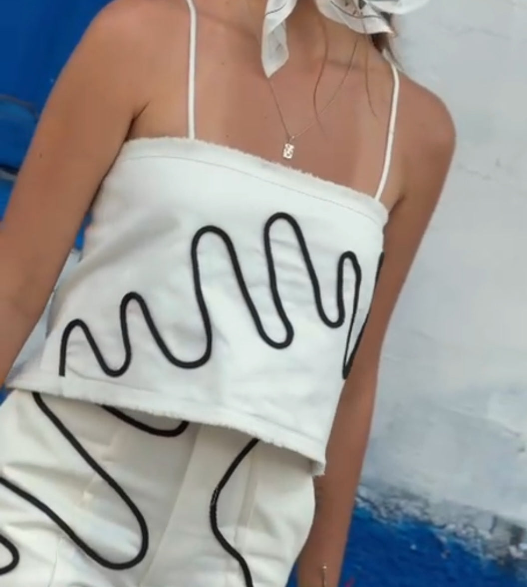 Elevate your everyday style with this Ivory Cotton Crop Top, featuring a minimalist black lineal design for a bold yet timeless look. Handmade in Colombia by skilled artisans, this crop top blends modern aesthetics with traditional craftsmanship.