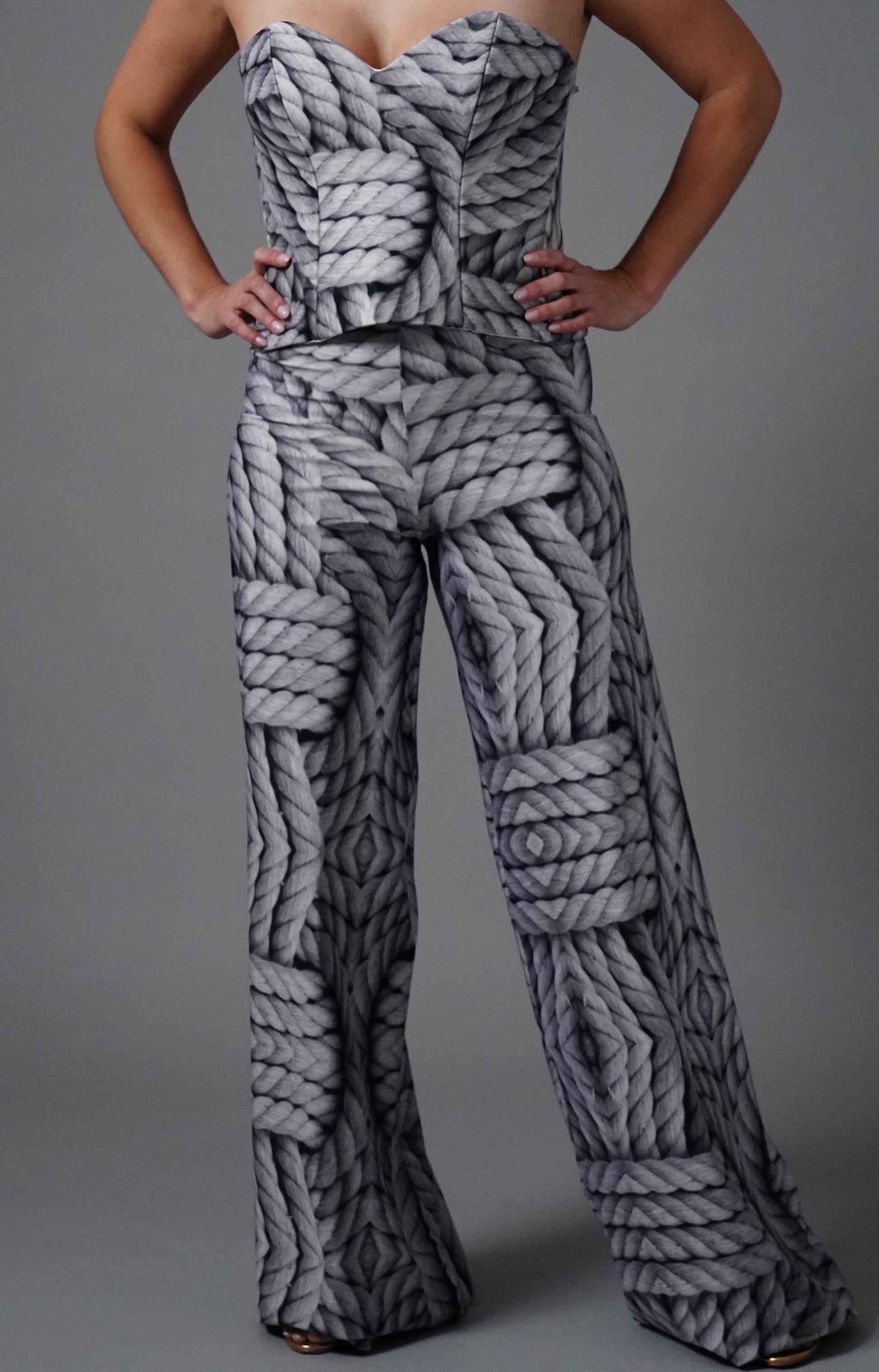 Bold, fluid, and unforgettable. These Rope Palazzo Pants are a true work of art, meticulously designed and handcrafted by Luis Antonio Moda. Featuring an intricate design that mimics the organic movement of rope, these pants offer a sculptural yet wearable silhouette that sets you apart wherever you go.