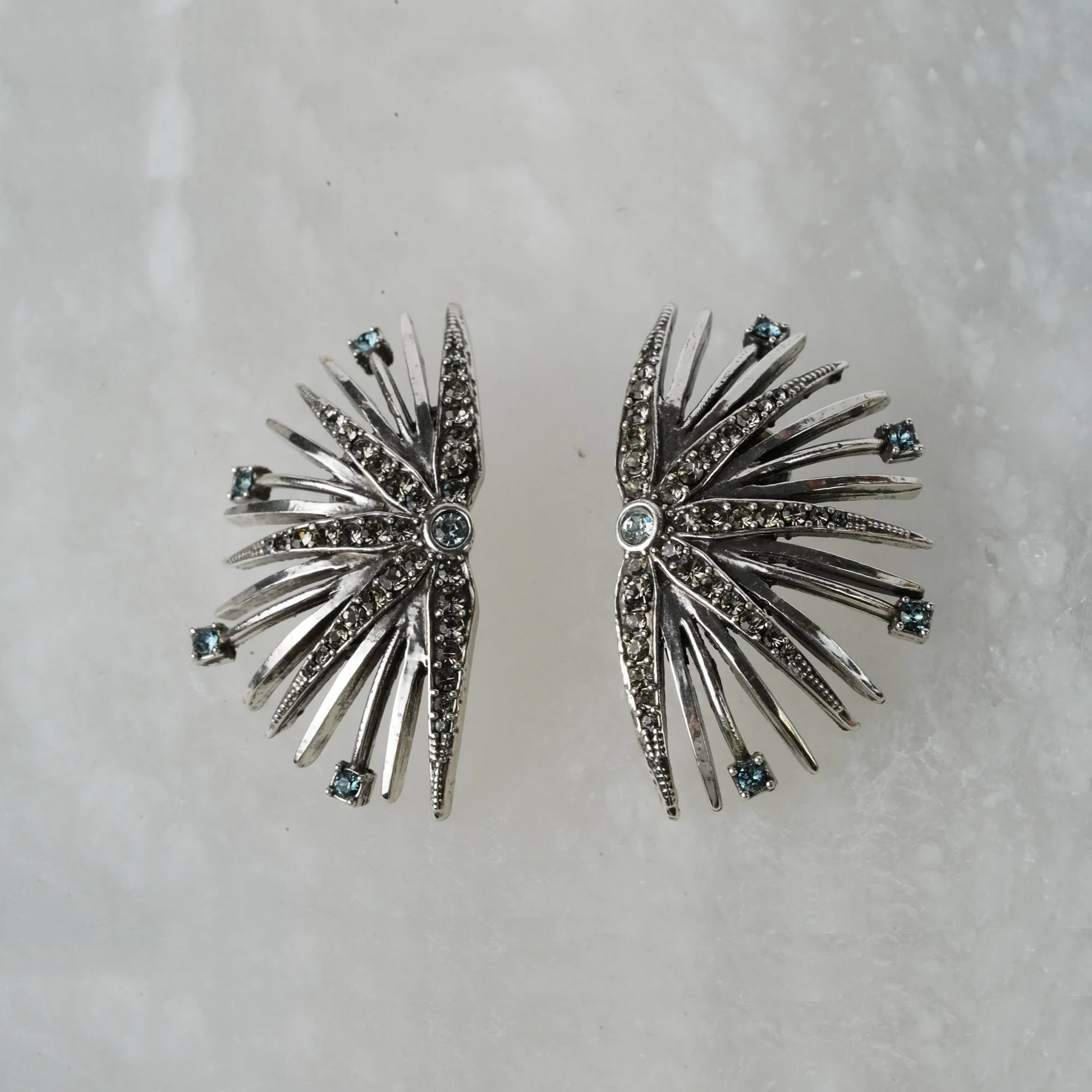 A pair of vintage silver earrings, cadmium and nickel free, adorned with 50 mini Austrian crystals. Inspired by starlight they capture a dazzling sparkle. Also available with silver plated